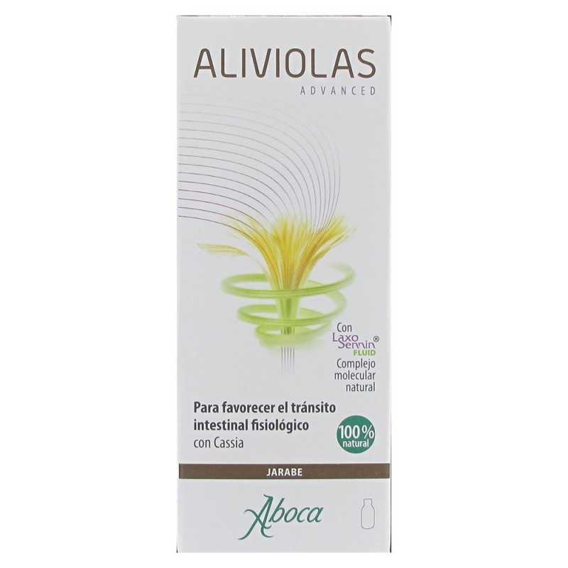 Aboca Aliviolas Advanced Jarabe 210g es un producto 100% natural que nace de las avanzadas plataformas científicas de la investigación de Aboca que han permitido desarrollar el innovador complejo molecular Laxosennin compuesto por derivados hidroxiantracénicos, flavonoides, ácidos hidroxicinámicos y ácidos grasos de Cassia, Achicoria, Hinojo, Diente de león, Alcaravea y Comino. Aliviolas Advanced jarabe es útil para favorecer el tránsito intestinal fisiológico gracias a la presencia de Cassia y actúa respetando el intestino gracias a su acción multifuncional debida a la sinergia de: