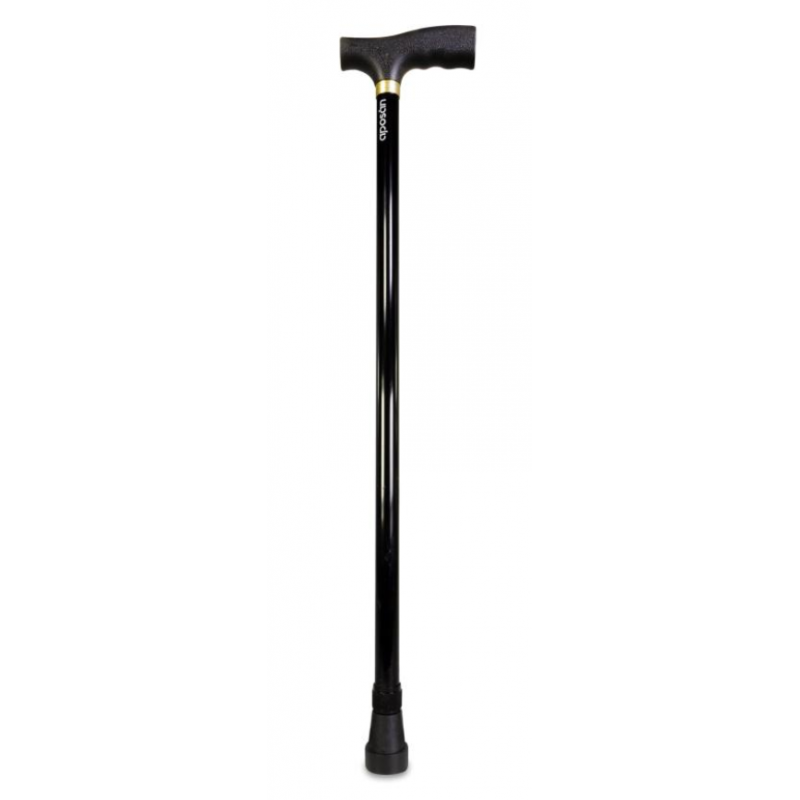 Bastón ajustable diseñado para ofrecer soporte y estabilidad a personas con movilidad reducida. Su altura es regulable, adaptándose a las necesidades del usuario, y está fabricado con materiales ligeros y resistentes para mayor comodidad y durabilidad. Ideal para quienes necesitan asistencia en el día a día, proporciona seguridad al caminar, especialmente en superficies irregulares.