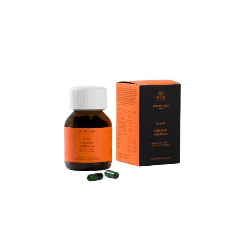 Complemento alimenticio a base de Coenzima Q10, N-Acestil-Cisteína, Trans-resveratrol, NADH y vitaminas B12, D3, K2. Ayuda a disminuir el cansancio y la fatiga y al funcionamiento del sistema inmunitario. 60 cápsulas.