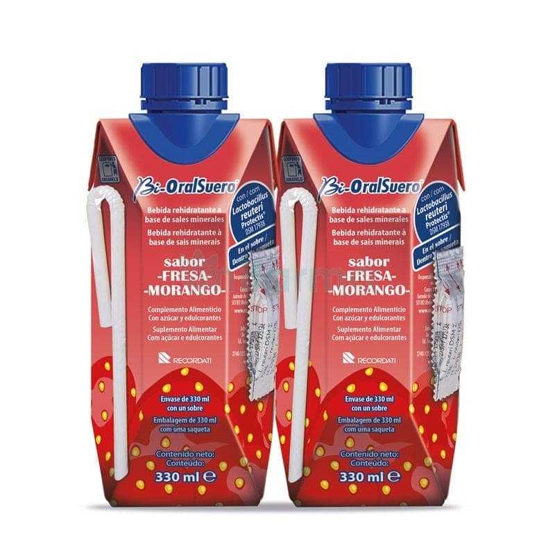 Agua desionizada, glucosa, citrato sódico, acidulante (E-514(i)), cloruro potásico, aroma de fresa, edulcorante (E-954), Lactobacillus Reuteri Protectis DSM 17938 (100 millones UFC).