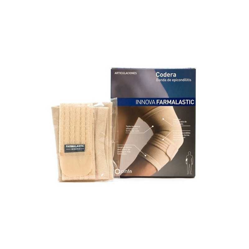 Codera bielástica textil sin costura con banda independiente ajustable con velcro al antebrazo. Cinta de epicondilitis utilizable de forma conjunta o por separado. Material transpirable de fácil lavado y mantenimiento.Longitud óptima para cubrir patologías más habituales.Indicaciones: - Carácter preventivo en la práctica deportiva.- Si se lesiona el codo con facilidad o no precisa inmovilización.- Para el codo de tenista (epicondilitis) y/o golfista (epitrocleitis).- Tendinitis, dolor inespecífico, tras el periodo de inmovilización en lesiones traumáticas.Tallas: Peq, Med, Gde. Color: Beige.Largura total: 17,1 cm (Peq), 18,2 cm (Med), 19 cm (Gde)Ancho superior: 11,4 cm (Peq), 12,4 cm (Med), 13,3 cm (Gde)Ancho inferior: 10,3 cm (Peq), 11,1 cm (Med), 12,1 cm (Gde)Elasticidad: 9% (Peq), 10% (Med), 11% (Gde)Compresión: 12,3 mmHg (Peq), 13,8 mmHg (Med), 14 mmHg (Gde)Producto sanitario Tipo I.