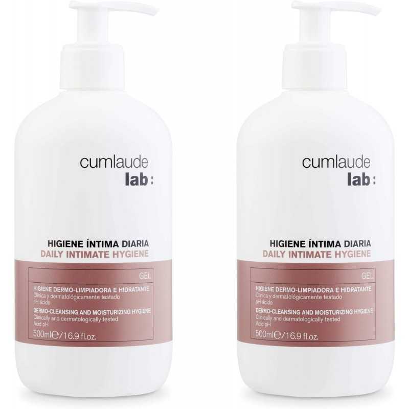 Cumlaude Lab Higiene Íntima Diaria (Duplo) - Gel Limpiador con Propiedades Hidratantes y Protectoras para la Zona Íntima, con Ácido Hialurónico y Ácido Láctico, pH Ácido - Pack de 2 x 500 ml