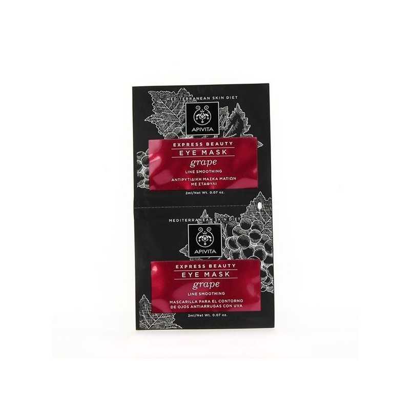 La mascarilla para el contorno de ojos con uva, uno de los secretos de longevidad de las regiones mediterráneas gracias a su acción antioxidante y anti-envejecimiento, suaviza los signos de envejecimiento y de fatiga del contorno de los ojos.