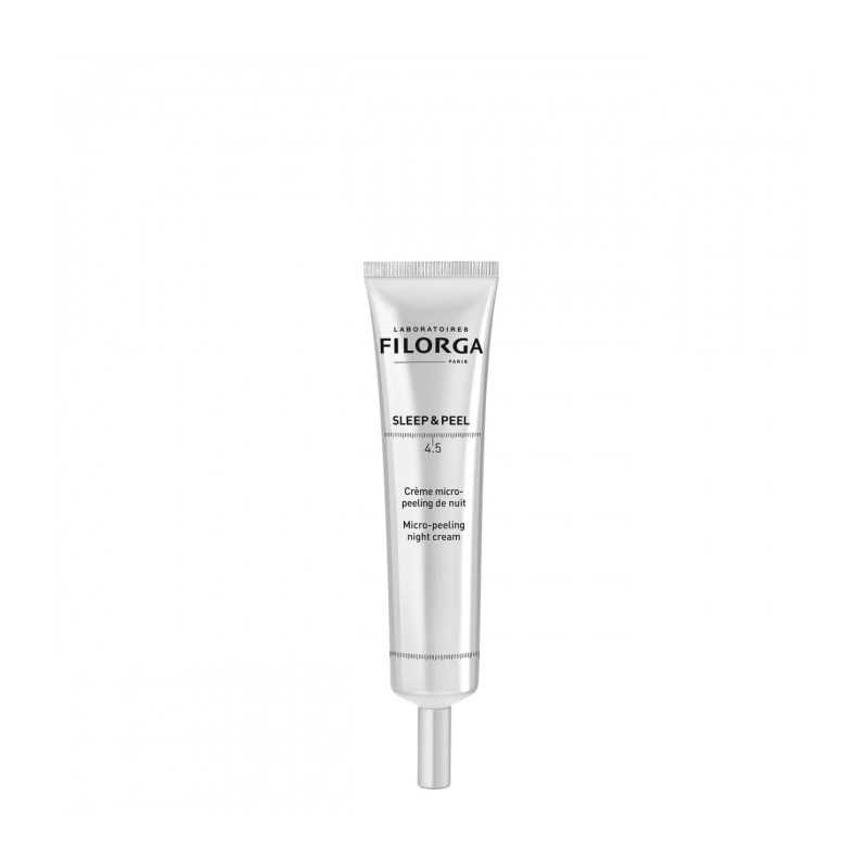 Filorga Sleep & Peel 4.5 Crema micropeeling de noche es un tratamiento inspirado en los peelings profesionales que regenera la piel con un efecto piel nueva, aportando luminosidad, renovando la textura, unificando el tono de la piel y combatiendo las arrugas y líneas de expresión. Una crema con un potente efecto micropeeling formulado a base de hidroxiácidos y con una acción calmante gracias al extracto natural de alga parda. Eficacia demostrada clínicamente y resultados desde la primera aplicación. Textura fundente crema ultrasuave y muy agradable en su aplicación