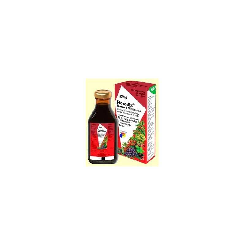 Extracto acuoso (54 %): - Zanahoria, ortiga, espinaca, raíz de grama, hinojo, alga marina, flores de hibisco.Mezcla de concentrados de jugos de frutas (29,4 %): - concentrado de jugo de pera y uva, jugo de grosella negra, agua, concentrado de jugo de zarzamora, cereza, naranja, remolacha y limón, extracto de algarroba, concentrado de jugo de manzana.Extracto acuoso de levadura (Saccharomyces cerevisiae), miel, extracto blando acuoso de escaramujo con un 4% de vitamina C, gluconato ferroso, extracto de germen de trigo, vitamina C, extracto de levadura, esencias naturales, vitaminas (B1, B2, B6, B12), maltodextrina .