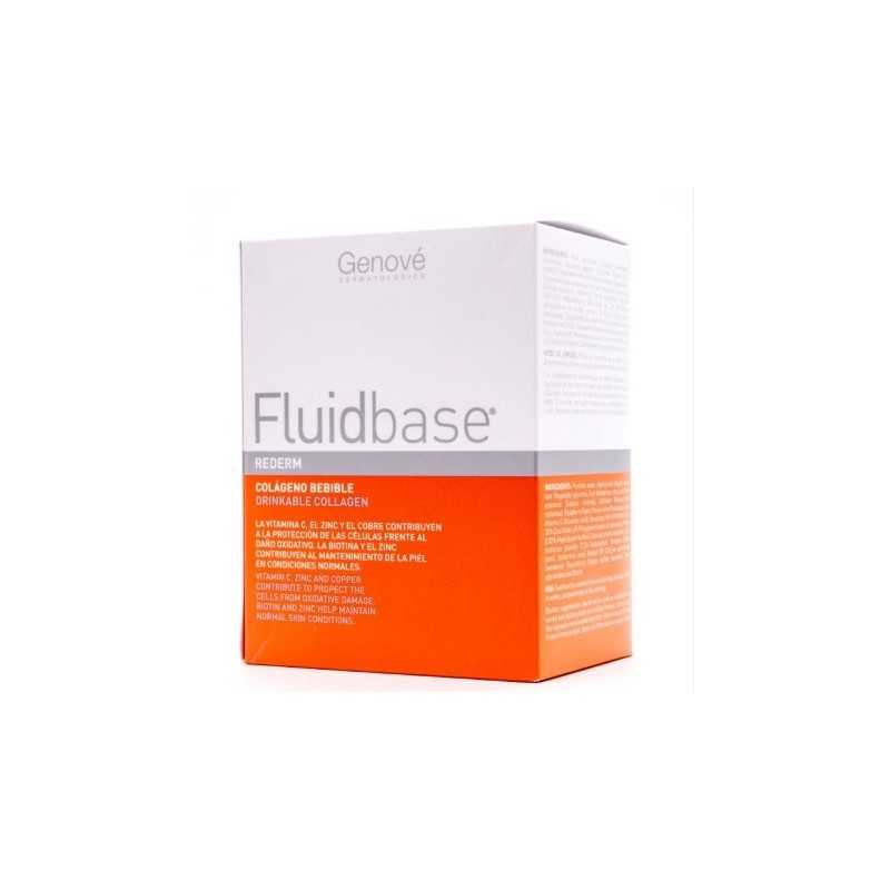 Fluidbase Rederm Colágeno Bebible es un complemento alimenticio a base de péptidos bioactivos de colágeno, ácido hialurónico, astaxantina, vitaminas y minerales.