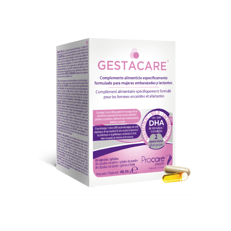 Una de las características que diferencia GESTACARE del resto de productos disponibles para esta etapa es que contiene la máxima concentración de DHA OmegaVida, con 450 mg de DHA procedente de microalgas, con un proceso de extracción patentado que asegura que está libre de ácido fitánico, y con Tecnología Sensory, sin olor ni sabor, mejorando la experiencia sensorial de la mujer embarazada.