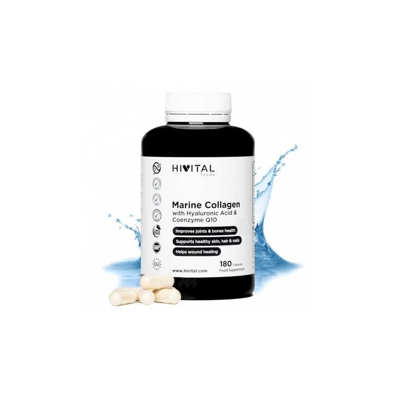 Hivital colágeno con ácido hialurónico contiene 180 cápsulas por bote, suministro para 3 meses. Se recomienda tomar 2 cápsulas al día con la comida.