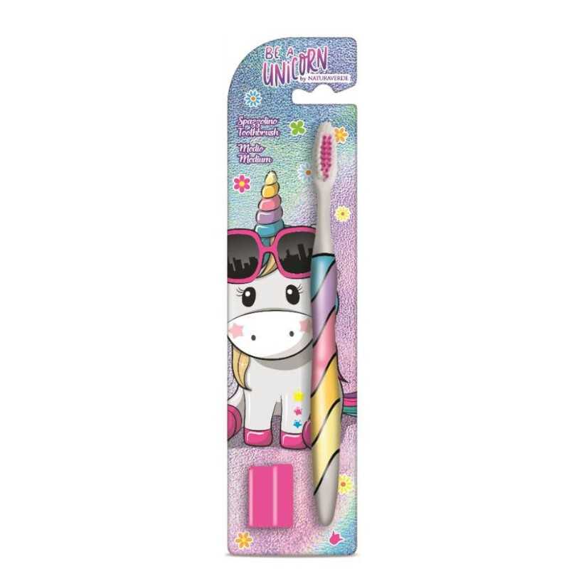 Cepillo de Dientes Unicornio con Tapa Medio. Indicado para la correcta higiene bucodental.