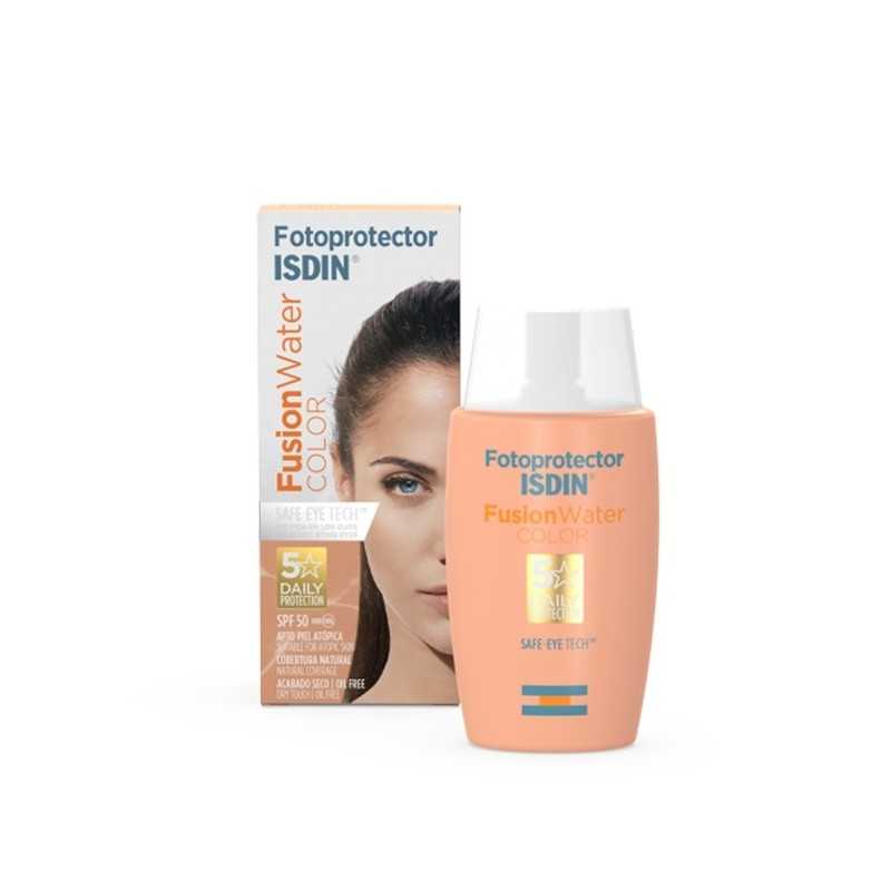Fusion Water Color Medium es un protector solar facial con color. Gracias a su textura ultraligera, protege tu piel diariamente contra los rayos UVB y UVA (SPF 50). Proporciona una cobertura natural que disimula imperfecciones, unifica el tono de la piel y un efecto de buen aspecto inmediato. ¿El mejor? No irrita los ojos.