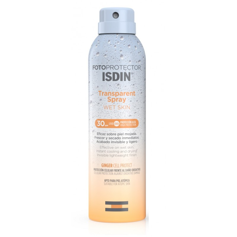 Fotoprotector en spray transparente, fresco y de secado inmediato.