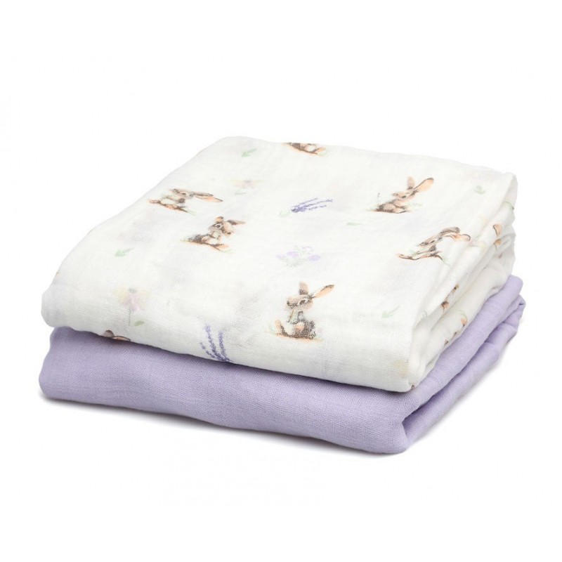 Presentación: pack de 2 muselinas con diseño en color lavanda