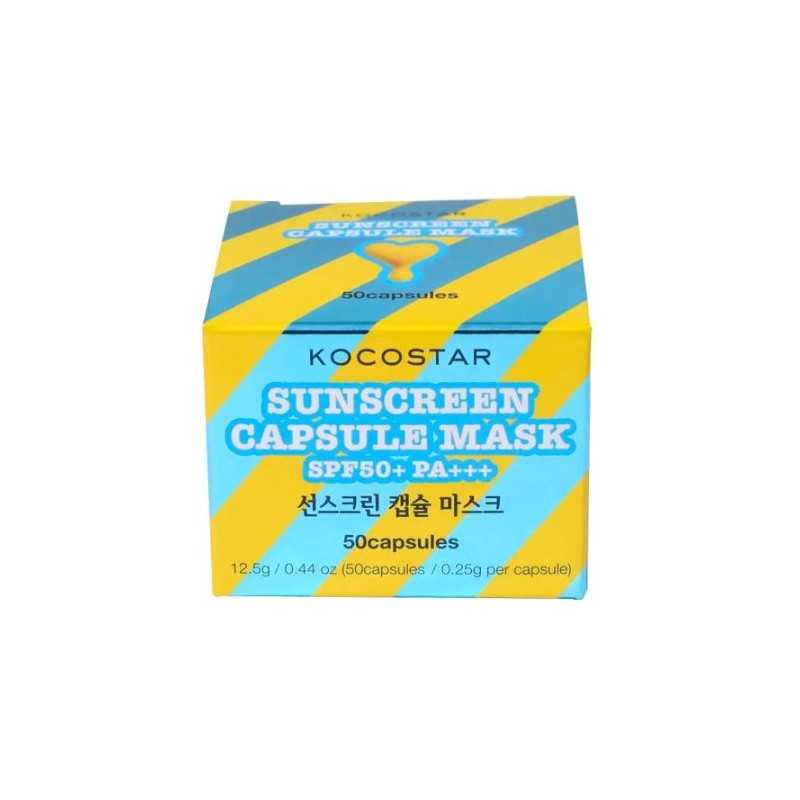 KOCOSTAR SUNSCREEN CAPSULE MASK es el primer protector solar coreano en formato monodosis. Consta de 50 cápsulas biodegradables o monodosis en forma de corazón, infundidas con protección solar SPF50+ y PA+++ que deja una textura suave y aterciopelada.