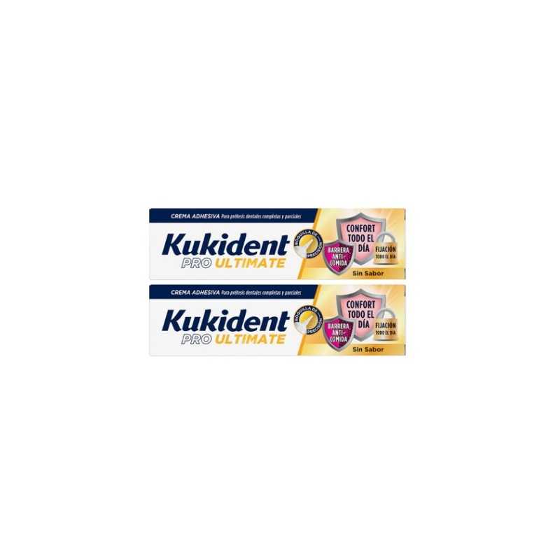 Kukident Pro Ultimate sin sabor es una crema adhesiva diseñada para prótesis dentales, ofreciendo una fijación segura y duradera. Su exclusiva fórmula crea una barrera protectora entre las encías y la prótesis, evitando la filtración de partículas de comida y proporcionando una sensación natural al comer y hablar.