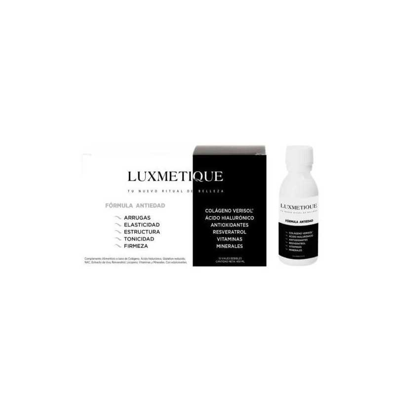 agua, Colágeno hidrolizado Verisol, Citrato de MAgnesio, Corrector de acídez ( Ácido cítrico), N-acetil-L-ascórbico ( Vitamina C ), Extracto seco de Uva ( Vitis vinifera L, 95% polifenoles, 5% Resveratrol), Conservador ( Benzoato sódico), Beta- caroteno ( Vitamina A), Citrato de zinc, Aroma ( Aroma de frutos del bosque), Acetato de DL-alfa- tocoferilo ( Vitamina E), Licopeno 10%, Nicotinamida ( Niacina, Vitamina B3), L- Seleniometionina, Glutation reducido, Extracto seco de Polygonum ( Polygonum cuspidatum, 95% Resveratrol), Gluconato cúprico. Edulcorantes ( Glucósidos de esteviol, y Sucralosa) y Riboflavina ( Vitamina B2).