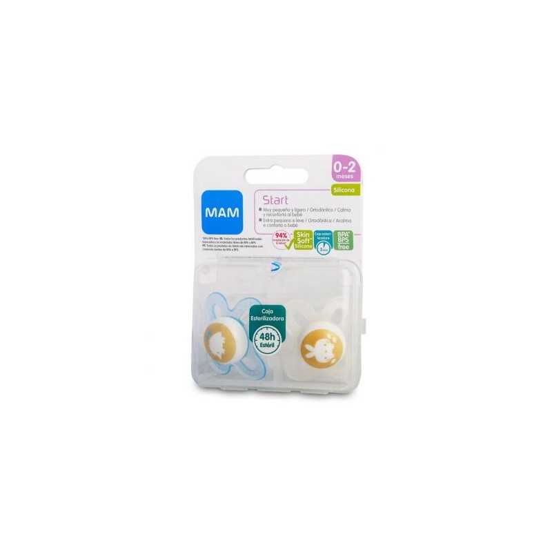 Mam Start R Chupete Silicona Fisiológica 0-2 Mm Pack 2 Uds es un pack de dos chupetes para bebés entre 0 y 2 meses. Se caracterizan por ser muy pequeños y ligeros. Están testados clínicamente y son ideales para disminuir la posibilidad de malposiciones en los dientes.