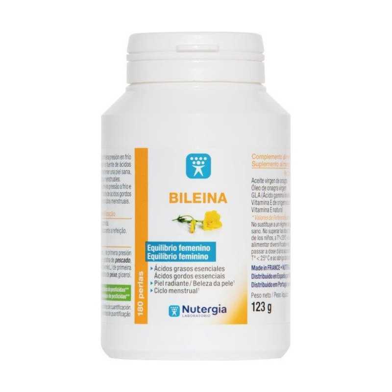 BILEINA esta compuesta por aceite de onagra 100%, obtenido por simple presión mecánica en frío. Se le añade vitamina E natural para conservar todas sus virtudes. El consumo de este aceite garantiza una toma de ácidos grasos poliinsaturados, beneficiosos para la mujer, en particular en caso de desórdenes relacionados con el ciclo y a nivel cutáneo.