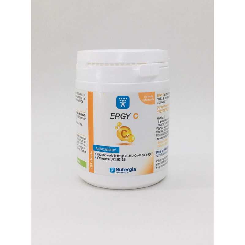 Vitamina C concentrada + Resveratrol + Cofactores antioxidantes. En la fórmula optimizada del ERGY C, la vitamina C se aporta por una parte bajo una forma particularmente bien tolerada por el organismo y por otro parte gracias a un extracto de acerola concentrado en vitamina C.
