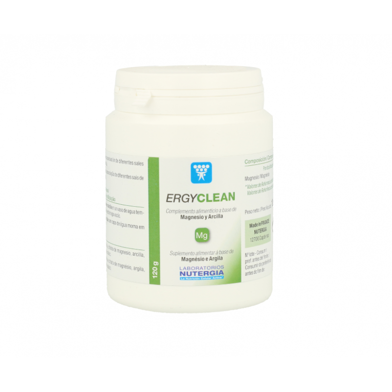 ERGYCLEAN está compuesto por sales de magnesio en sus diferentes formas (carbonatos, citratos y sulfatos) junto con arcilla y ácido málico. Esos ingredientes son conocidos como suaves laxantes.