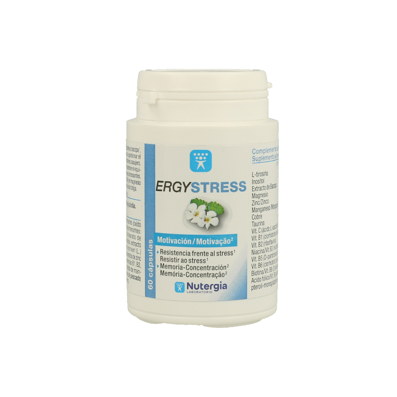 ERGYSTRESS asocia la schisandra, que ayuda al organismo a hacer frente al stress pasajero, a la vitamina B5 que favorece el rendimiento mental así como la concentración, el aprendizaje, la memoria y el razonamiento.