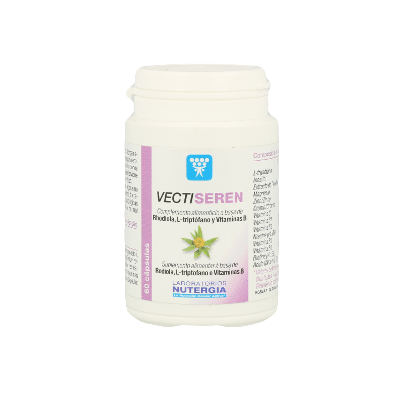 VECTISEREN asocia la rodiola, que ayuda a reducir el impacto negativo del stress sobre el organismo, con la vitamina B9 que contribuye a funciones psicológicas normales. También aporta vitamina B3 que interviene en el buen funcionamiento del sistema nervioso.