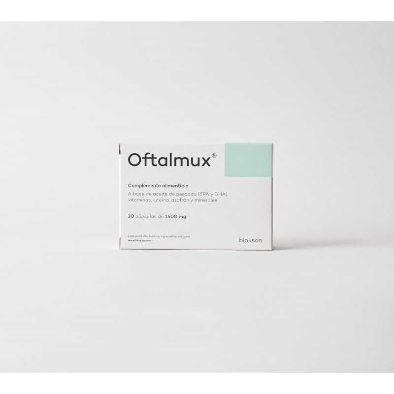 OFTALMUX es un complemento alimenticio a base de aceite de pescado (EPA y DHA), vitaminas, luteína, azafrán y minerales. Ideado para contribuir al mantenimiento de la visión en condiciones normales.