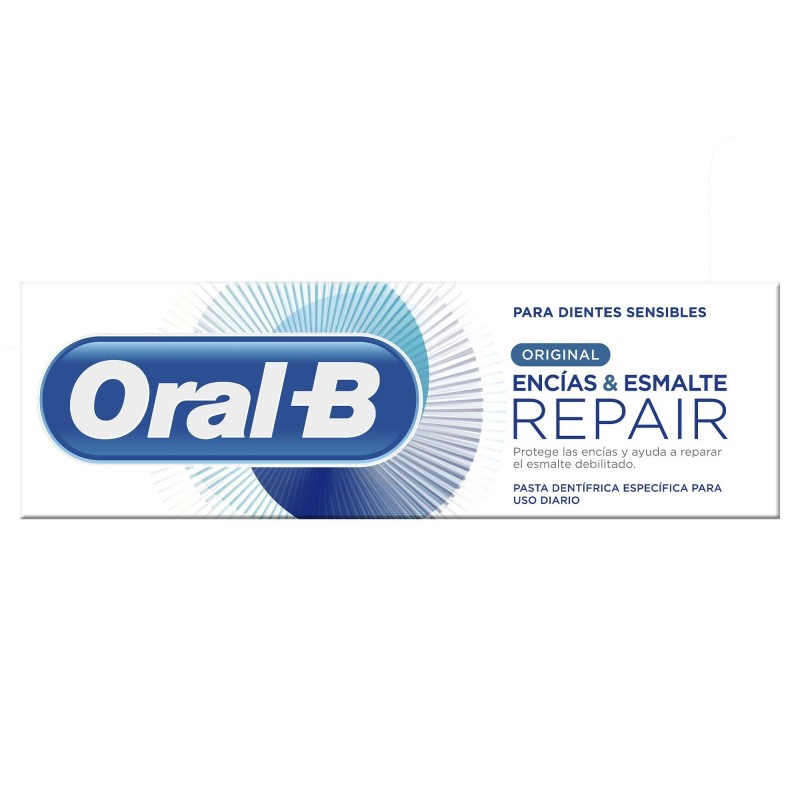 Oral B Pasta Dentífrica Repair Original Encías y Esmalte 75ml se trata de una solución cómoda y eficaz en un formato de dentífrico para utilizar en el cepillado diario. Gracias a su composición lograremos reparar el esmalte que se ha dañado y rejuvenecer las encías. Cuida los dientes de la erosión ácida y contribuye a que se repare por completo el esmalte. Ahora cuentas con el doble de dentífrico para que la higiene bucodental sin molestias se alargue por más tiempo con este magnífico duplo.