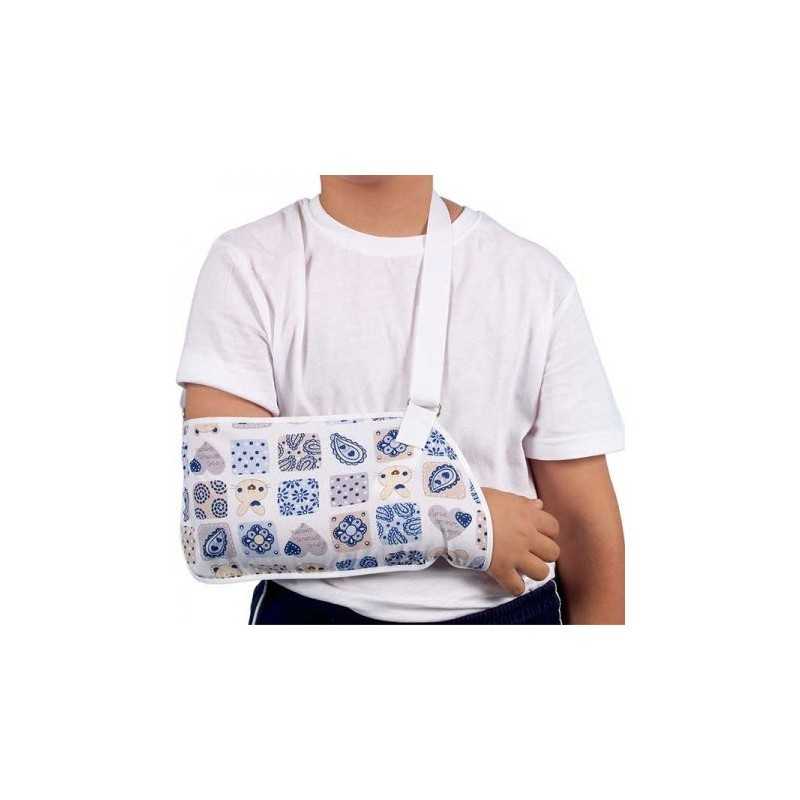 Proporciona soporte y reposicionamiento al brazo de los niños. Fabricado en poliester y algodón. De fácil colocación. Medidas del cabestrillo 28×14 cm. Talla única. No guarda lado.