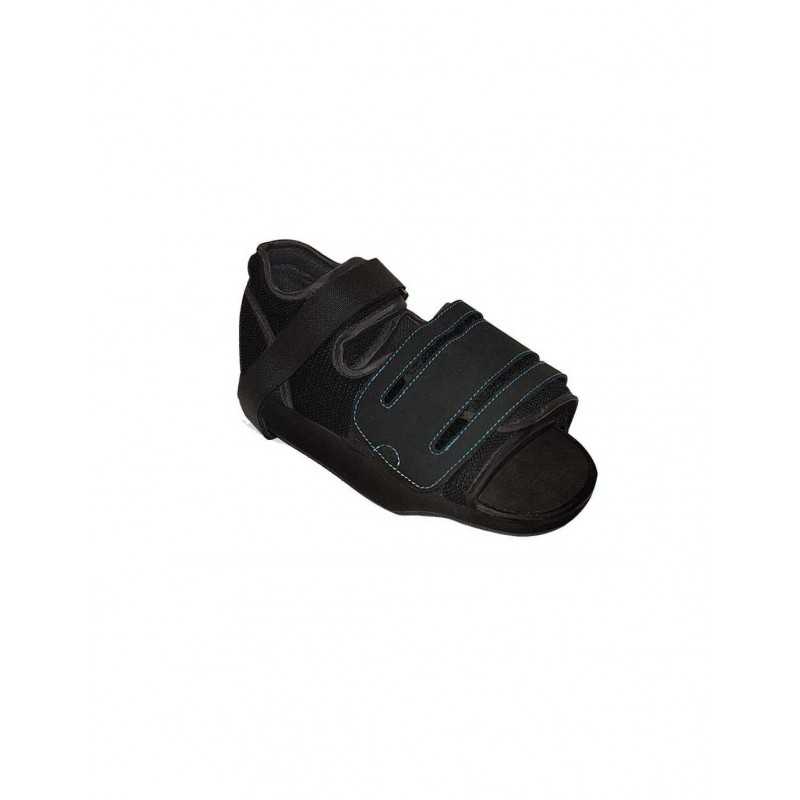 Zapato de protección post-operatoria. Protege y mantiene el pie en posición correcta durante el proceso de recuperación. Indicado para post-cirugías de pie y de los dedos, para pies escayolados o con vendajes inmovilizantes y para edemas de pies donde no es posible acomodar un zapato convencional.