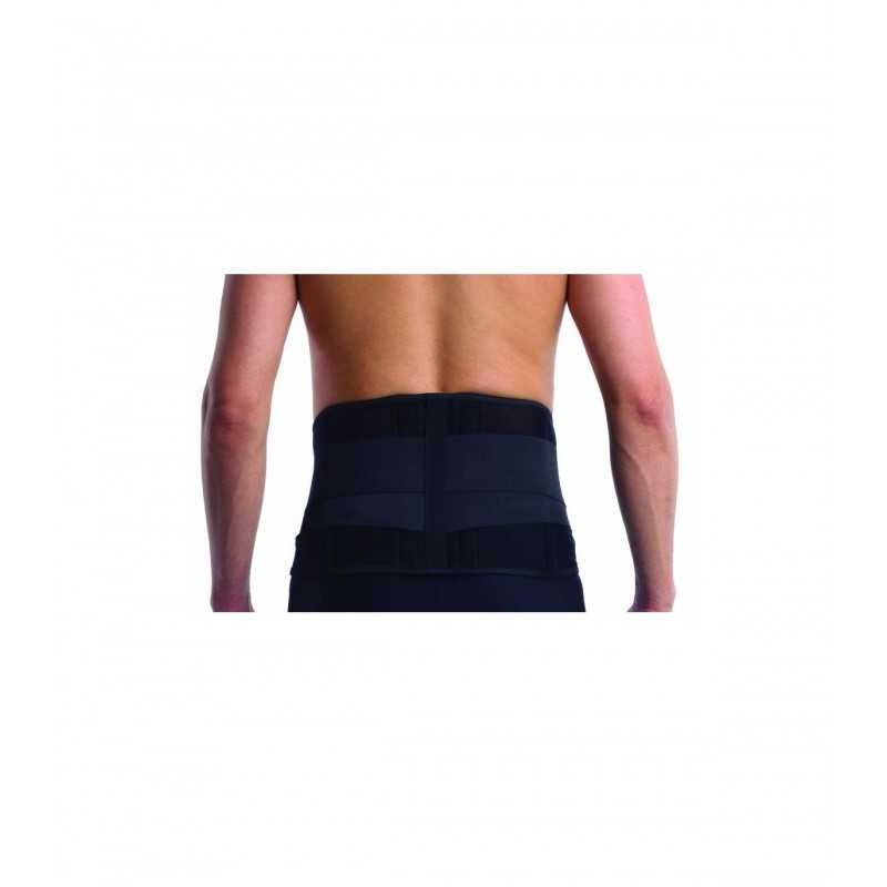 Primspine Laboral Faja Lumbosacra Semirrígida es una faja de contención para trabajo, fabricada en tul elástico de lycra transpirable y polipiel, con cierre frontal de velcro. Soporte trasero conformado con 4 ballenas que aportan la sujeción adecuada a nivel lumbar. Se complementa con 2 ballenas inguinales como refuerzo.