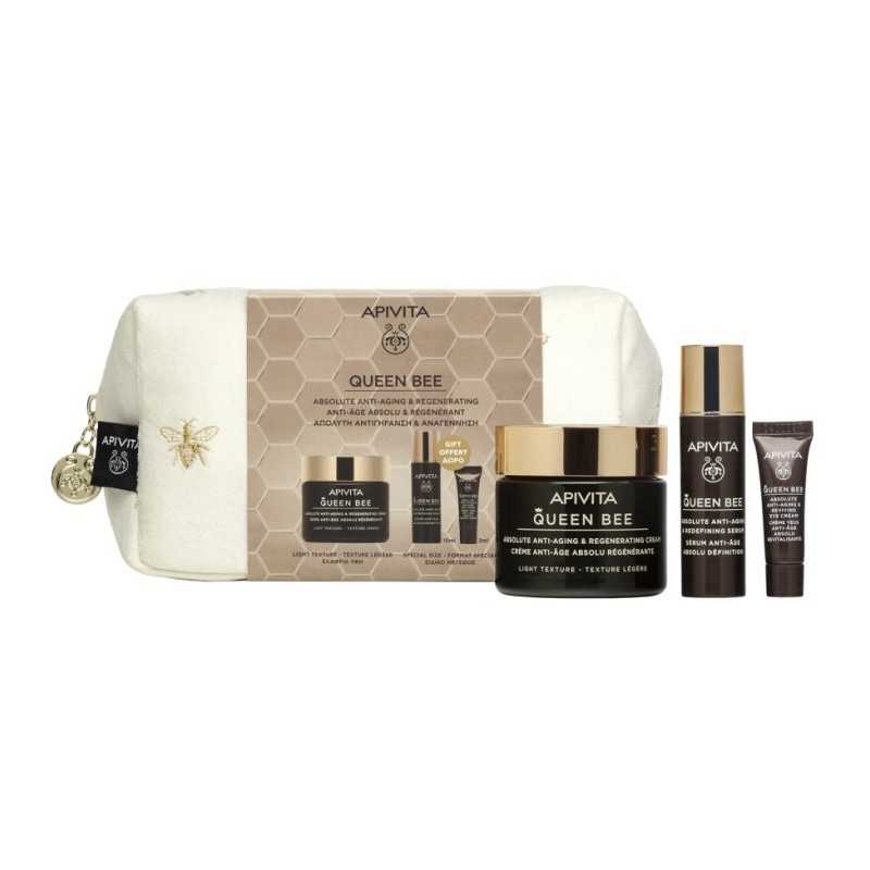Apivita Queen Bee Crema Antienvejecimiento Holística para el tratamiento diario de la piel seca, que nutre la piel en profundidad, ejerciendo un efecto lifting, unificando el tono y restaurando la elasticidad. Entre la formulación de esta crema sobresalen la jalea real encapsulada en liposomas, la base de infusión natural y la extracción de propóleo patentado. En concreto, la jalea real griega encapsulada en liposomas acelera la regeneración de la piel, reduce las arrugas e incrementa la elasticidad y la vitalidad de la piel. Por otra parte, cabe destacar que Apivita ha sustituido en la línea Queen Bee el agua por la infusión de rosa silvestre griega orgánica, Florina. Esta infusión posee un elevado contenido de polifenoles y potencia el efecto antioxidante de los productos. La patente de extracto de propóleo ejerce una acción antioxidante y protege del estrés oxidativo y los factores ambientales adversos.