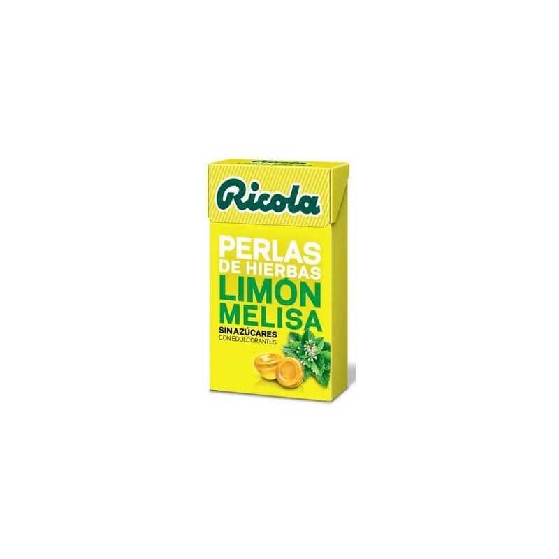 Espesante (goma arábiga), humectante (jarabe de sorbitol), acidulante (ácido cítrico), extracto (0,7%) de melisa y de hierbas Ricola, aromas naturales de cítricos, concentrado de zumo de limón, edulcorantes (sucralosa, acesulfamo K), mentol, triglicéridos de cadena media, colorante (beta-carotenos).
