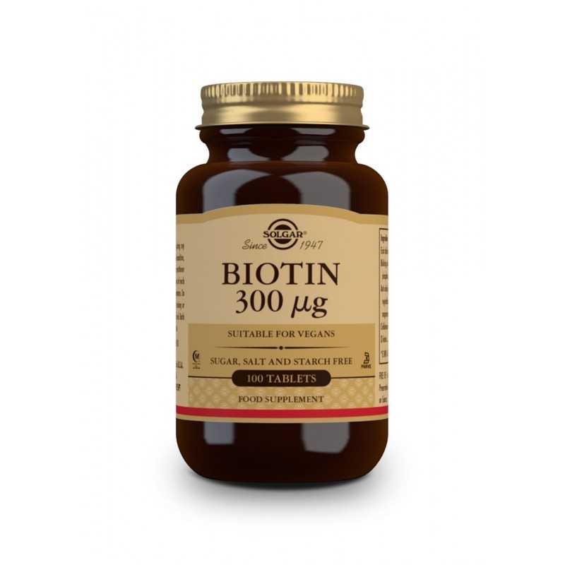 Solgar Biotina 300 µg Comprimidos contiene 300 µg de la vitamina B hidrosoluble biotina. Quizá es más conocida por sus propiedades cosméticas, especialmente porque ayuda a conseguir que el cabello crezca sano y brillante. La biotina se añade con frecuencia a los productos de belleza, pero la absorción a través de la digestión es mucho mayor que cuando se aplica a la piel.