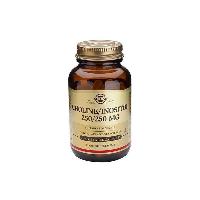 Solgar® Colina 250 mg / Inositol 250 mg Cápsulas vegetales contiene colina e inositol que desempeñan un papel importante en distintos procesos del organismo.