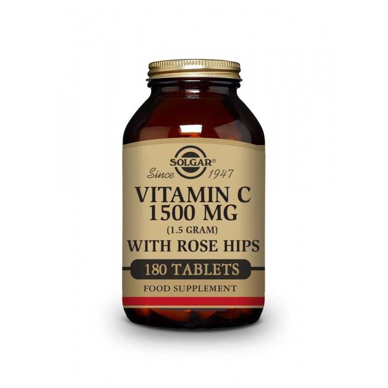 Solgar® Vitamina C con escaramujo 1500 mg es un complemento de alta calidad apto para veganos y con solo 1 comprimido al día aporta 1500 mg de vitamina C y uno de sus complementos sinérgicos, el escaramujo.