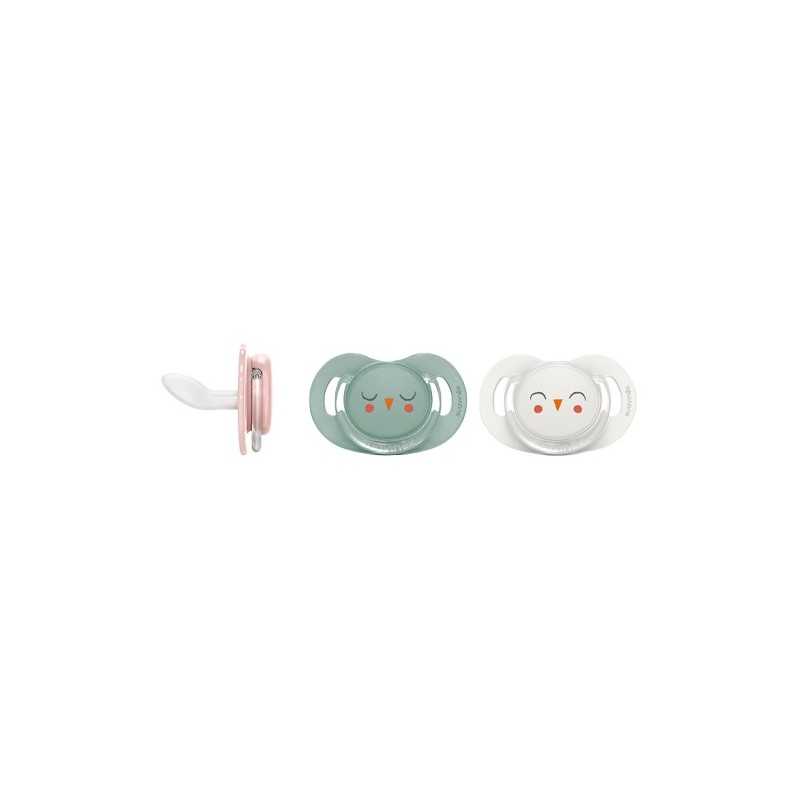 - No dejar el chupete expuesto a la luz solar directa o cerca de una fuente de calor, ni en contacto con un desinfectante (solución esterilizante) durante más tiempo del recomendado, puesto que esto puede dañar la tetina.