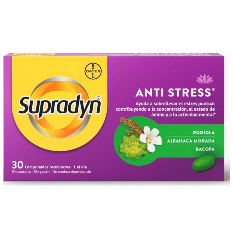 Supradyn Anti Stress, ayuda al estrés puntual contribuyendo a la concentración, al estado ánimo y a la actividad mental.