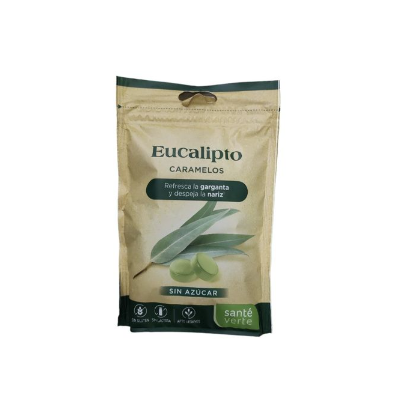 Santé Verte CARAMELOS EUCALIPTO 60 gr: Caramelos elaborados con ingredientes 100% naturales, sin colorantes ni sabores artificiales que protegen y suavizan tu garganta mientras refrescan el aliento.