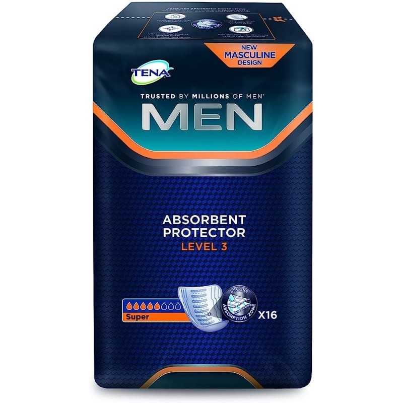 Tena Men Level 3 es una compresa absorbente para la incontinencia urinaria masculina y las pérdidas moderadas de orina, especialmente diseñada para la anatomía masculina.