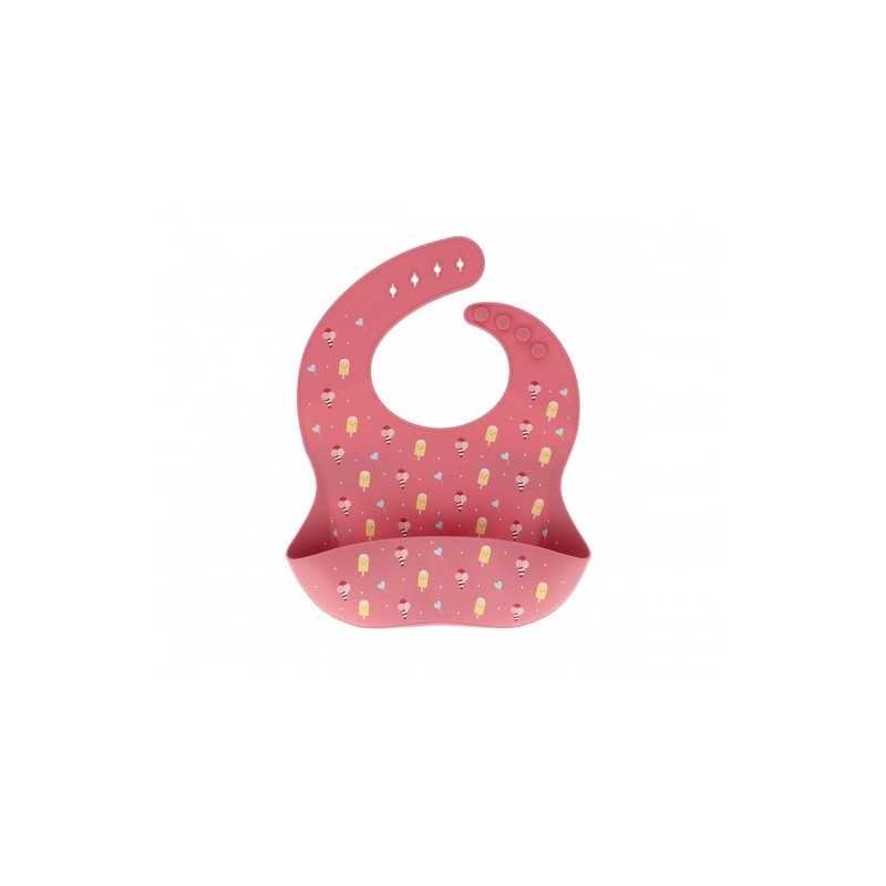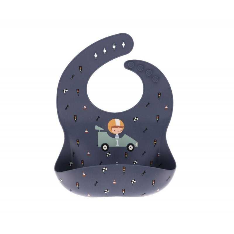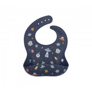 Babero de silicona con un bolsillo recogemigas para evitar que caiga la comida a la ropa.